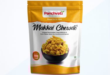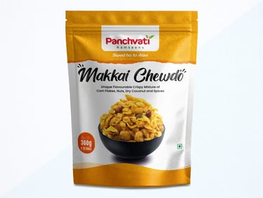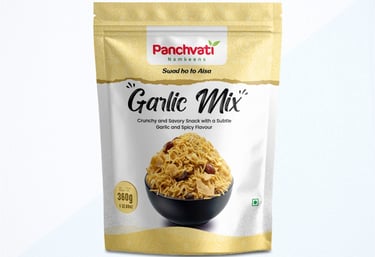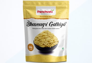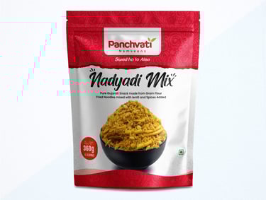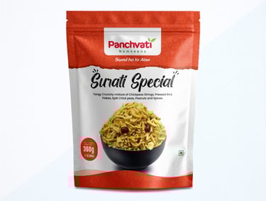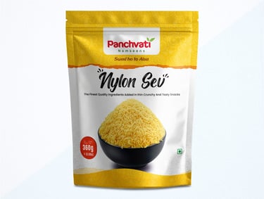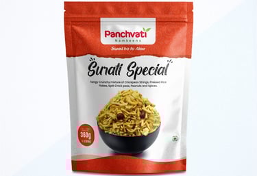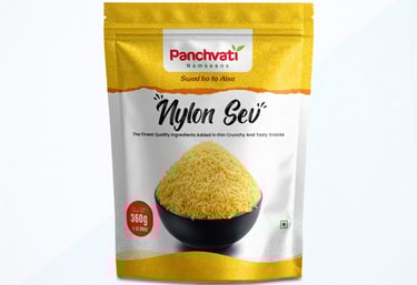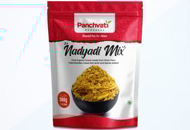 “Pure gujarati snacks made from gram flour fried noodles mix with lentils and spice added.”
