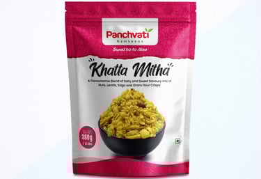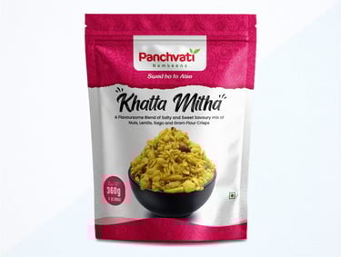 “A flavoursome blend of salty and sweet savoury mix of nuts, lentils, sago and gram flour crisps.”